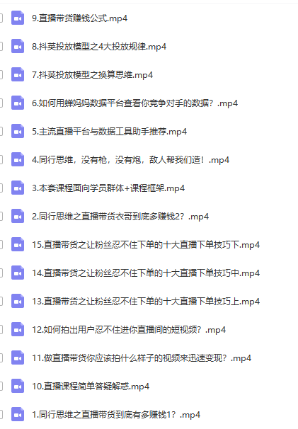 直播带货全套课程 直播带货 视频课程 此教程从0到1讲解直播带货,还包括抖+投放,8月17日更新,以下是视频内容目录 资源下载下载价格VIP专享仅限VIP下载升级VIP客服微信/QQ:645876098 0